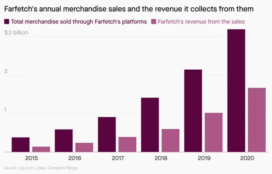 파페치 (Farfetch)에 입점한 3,500여 개의 의류 브랜드들이 파페치의 플랫폼을 사용