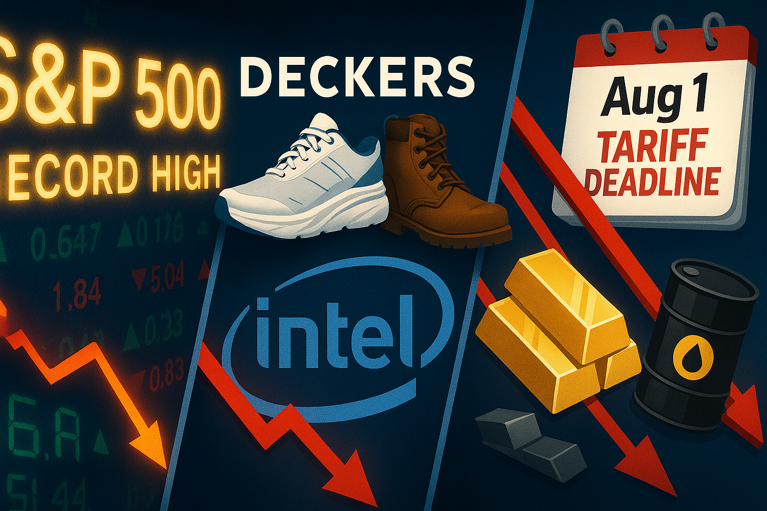 S&P 500은 +0.40%로 연속 신고가를 이어갔고, 나스닥은 +0.24%, 다우지수도 +0.47% 상승했습니다. 특히 덱커스 아웃도어(+11.4%)가 Hoka·UGG 글로벌 수요 덕분에 급등하며 시장 분위기를 이끌었고, EU와의 무역 협상 진척이 위험자산 선호를 강화했습니다.