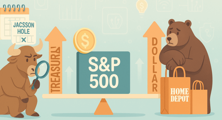 뉴욕증시는 잭슨홀 미팅과 소매업체 실적을 앞두고 방향성을 잃은 하루였습니다. 국채금리 상승과 달러 강세는 경기 둔화 우려와 맞물려 투자심리를 억눌렀지만, 기술주 중심의 방어적 매수세가 나스닥을 소폭 끌어올렸습니다.