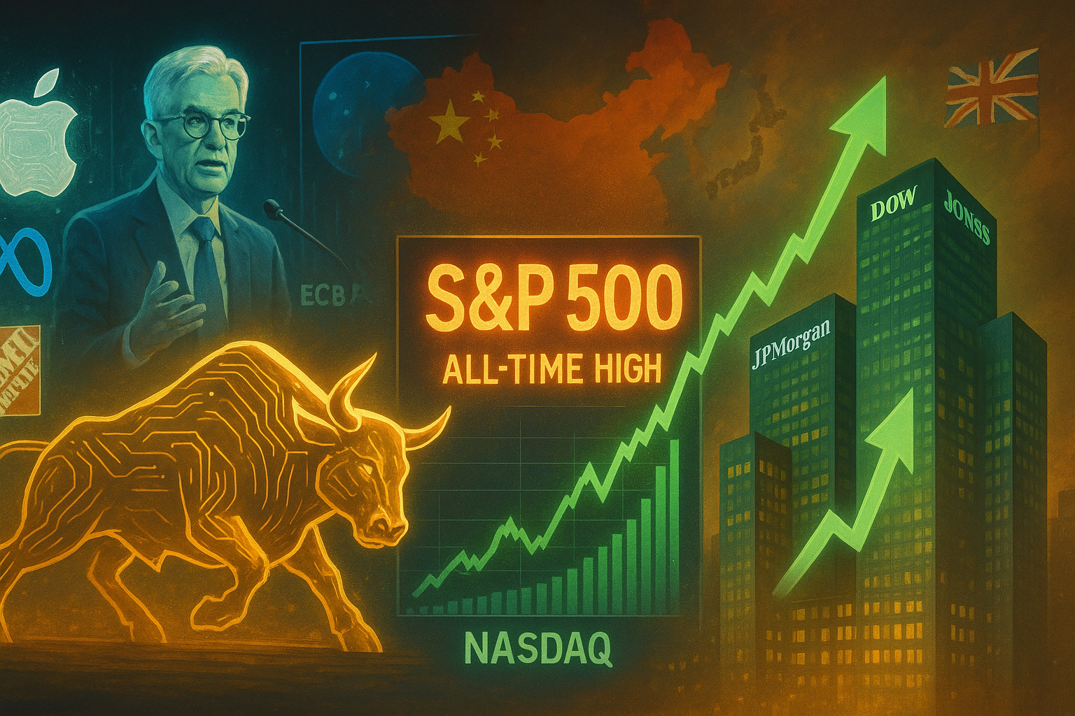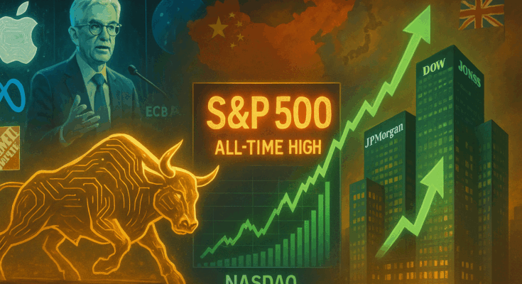S&P 500과 나스닥은 사상 최고치를 경신했으며, 기술주 중심의 랠리가 두드러졌습니다.