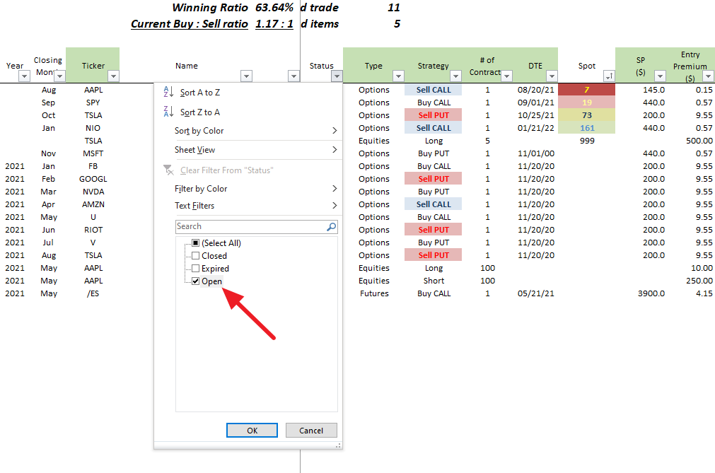 그리고 평소에는 Status 열을 ‘open’으로 정렬시켜 이미 만기/청산된 포지션을 가리는 게 포트폴리오를 깔끔하게 유지하는 데에 도움이 될 것이다.